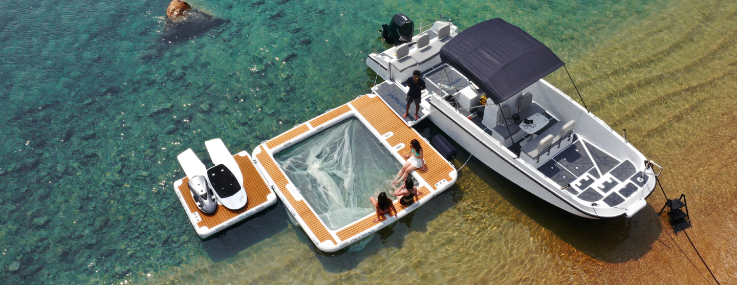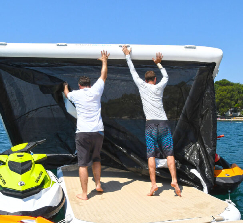 Yachtbeach Custom Pools are made to ensure maximum safety against unwanted sealife, such as jellyfish or other creatures and provide more fun and comfort at your boat. 20cm high quality drop stitch material ensures maximum stability to walk around, or to have some additional space to lounge.