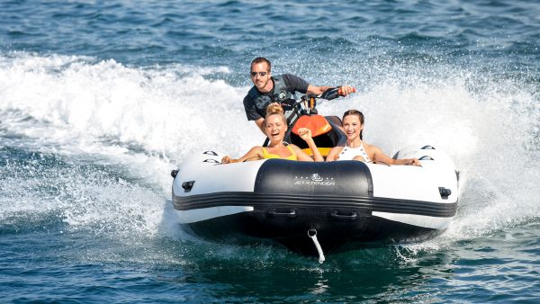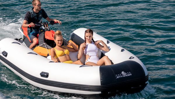 Jet Ski or Dinghy? BOTH! Have the ultimate fun on your Jet Ski with space for 6 more people! This innovative Jet Ski extension is the biggest party on the water! EU Certification as a boat! JETXTENDER is an indispensable accessory for your Jet Ski. It looks and feels like a regular inflatable boat, but attaching it to a Jet Ski means no more outboard motor! Jet Ski owners love speed and manoeuvrability, but miss the room to take more passengers along. The JETXTENDER offers them the best of both worlds. JETXTENDER is light and packs up so small that you can carry it on your Jet Ski. It inflates in just moments and is easy to attach. You can ride it with agility through very shallow waters. JETXTENDER also works great at both – high and low speeds, making it unrivalled in both – recreational or rescue applications. With the Jetxtender you can take 6 people at maximum with you plus the additional person on the Jet Ski. You can use it with any other Jet Ski, for extra space, buoyancy, stability, safety or visibility. YOU WILL LOVE THIS GADGET!