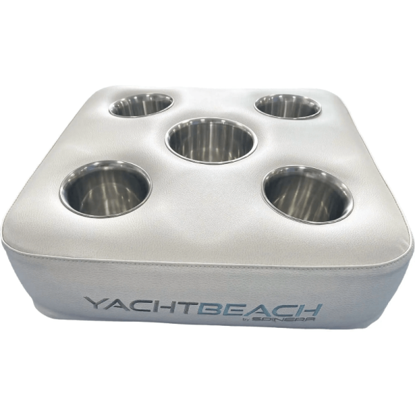 Yachtbeach – floating cup holder The Yachtbeach Floating Cup Holder is simply a part of a relaxing day on the water. It offers enough space for glasses, cans, bottles or other drinks. When you open the zipper you get to the valve and you can easily inflate the cup holder. Thanks to the loaded artificial marine leather, it is very UV resistant and highly resistant in terms of scratches. It is very easy to clean and the 4 cup holders are made of real stainless steel. Detailed information: Material: artificial navy leather 4 stainless steel drink holders size: 36cm x 36 cm x 11cm.